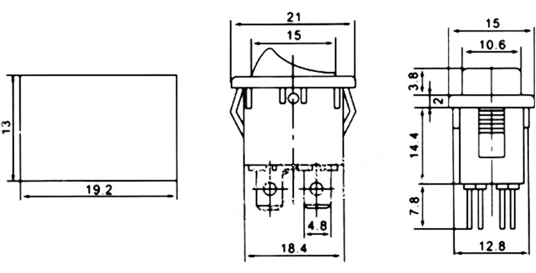 Технічні характеристики перемикачі з підсвічуванням KCD-1-104 (ON-OFF), 4-х контактний, 6A, 220V