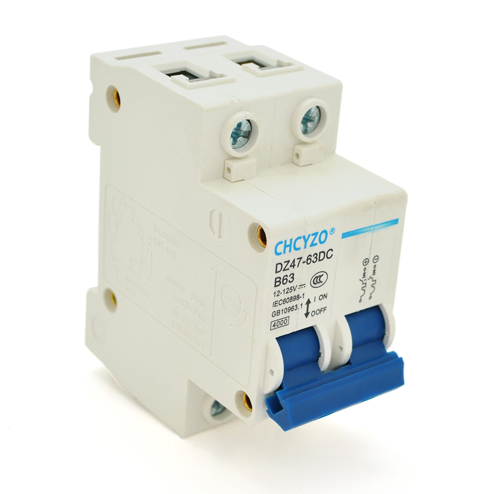 Автоматичний вимикач постійного струму CHCYZO DZ47-63DC-B63, 2P, 63A, 12-125V