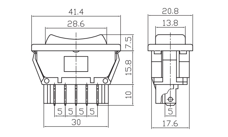 Технічні характеристики перемикача склопідіймача ASW-01 ((ON)-OFF-(ON)) "", 5-та контактна, 20A, 12V