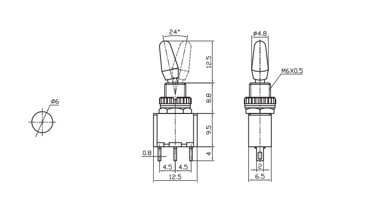 Технічні характеристики тумблера MTS-102 (ON-ON) 3-х контактний, 3A, 250VAC