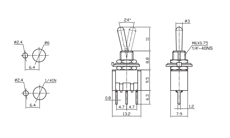 | Тип перемикання | OFF-ON, ON-OFF-ON |
