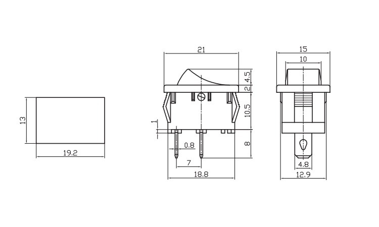 Технічні характеристики перемикача MRS-101A (ON-OFF) "", 2х контактний, 6А, 220V, чорний